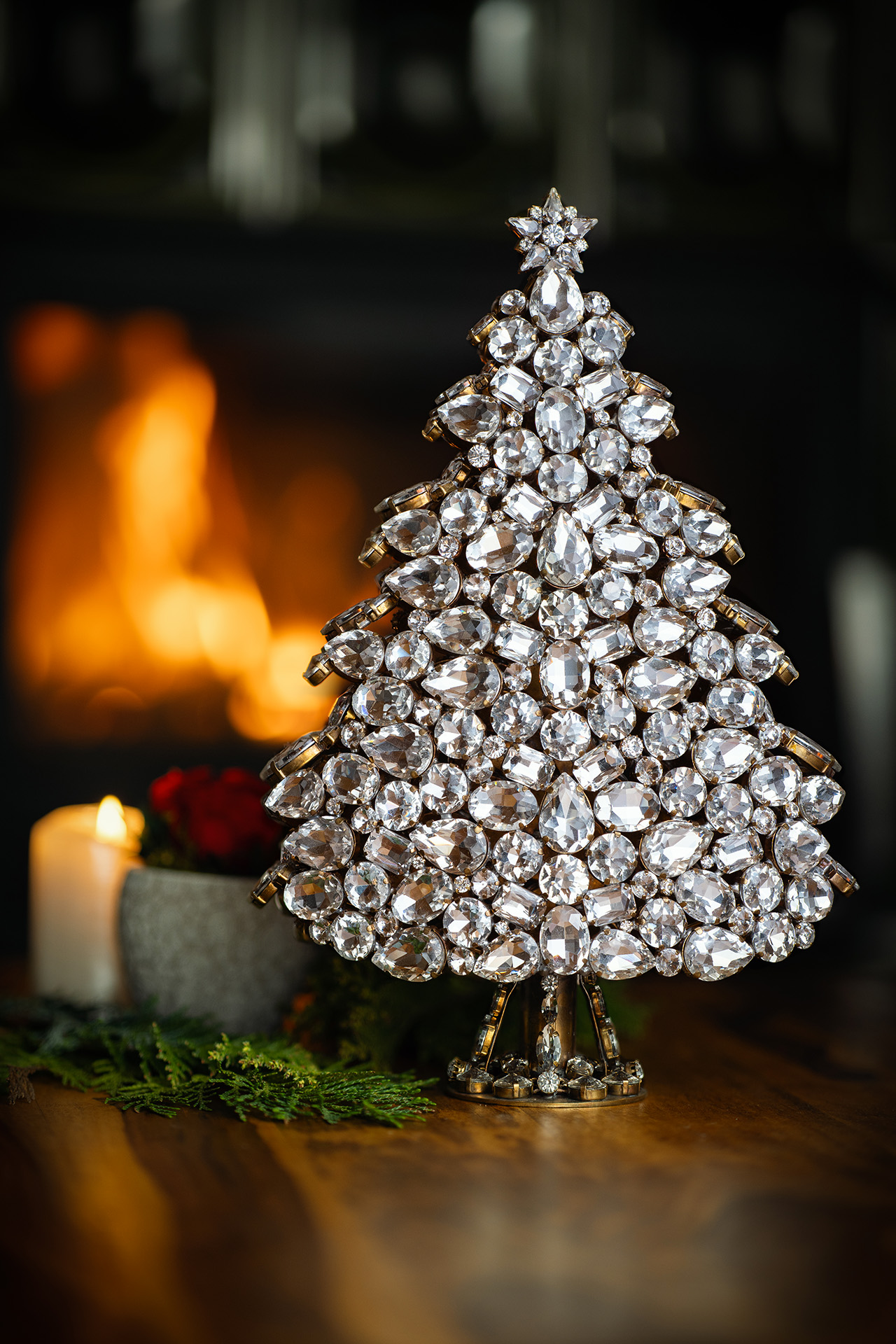 Festive 3D tabletop Christmas tree that is handcrafted using flawlessly cut Clear colored Czech Rhinestone crystals makes this Magical Christmas Tree an absolutely lovely gift to add to your collection. Stunning from every perspective.