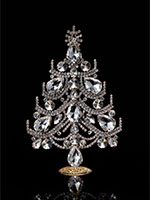 Charming decorated Christmas tree handcrafted with light pink rhinestones. With festive candles, tinsel made from tiny cut rhinestones and topped with a beautiful Christmas star.