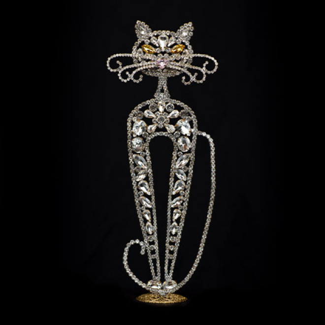 Elegant rhinestone cat with a crystal sparkle. A handcrafted decorative figurine bringing charm and luxury to your home decor.