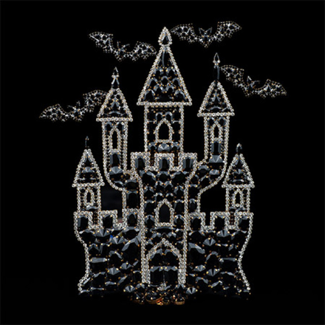 A crystal haunted castle decoration that creates a dramatic Halloween atmosphere with a refined, elegant sparkle.