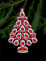 Splendid tabletop Czech Christmas tree, handcrafted beautifully with clear and topaz colored rhinestone crystals. A superb Christmas ornament to add to your glass Christmas decorations.