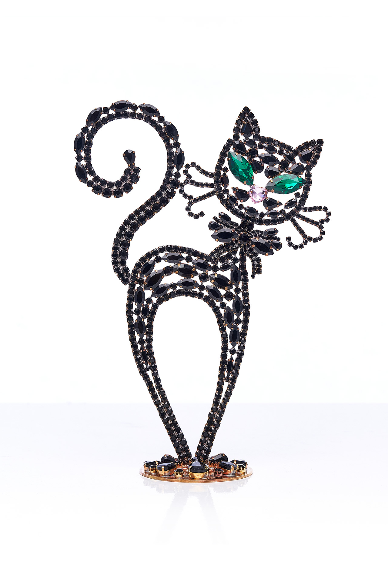 Bring the holiday cheer into your home with our luxurious and unique decorations! Our exquisite cat design is handcrafted with dazzling jewel stones and shining black rhinestones that gives off a commanding energy and an air of sleek sophistication. This cat design features the glimmering curvy tail that will instantly catch anyone's eye. Enjoy the beauty of the holidays this season and give your home a special sparkle with our one-of-a-kind holiday decorations.